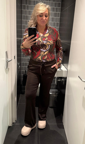 De Choco Straight Leg is een stijlvolle broek in een warme chocoladebruine tint. Gemaakt van een comfortabele, soepele stof met een tijdloze rechte pasvorm — perfect te combineren voor elke look.