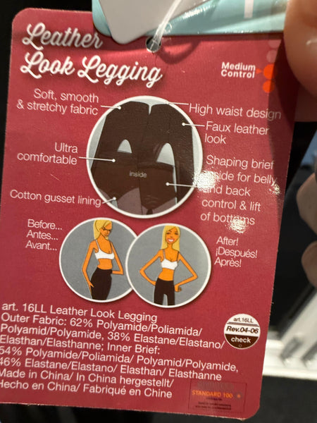 De Leather Look Legging is de perfecte mix tussen shapewear en bovenkleding! Het heeft een ingebouwde corrigerende short aan de binnenkant met katoenen kruisje. De corrigerende short biedt medium correctie aan de buik, heupen en onderrug. De hoge taille zorgt  voor een perfecte bedekking. De speciale zone in het corrigerende broekje zorgtvoor een perfecte lift van de billen. De Leather Look Legging is gemaakt van een gladde, kunstleren stof.